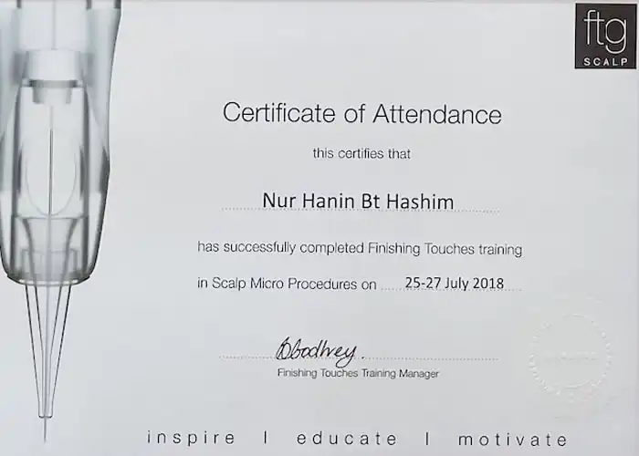 2. Certificate of Attendance in Finishing Touches training In Scalp Micro Procedures (2018)