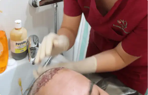 We recommend our patients to start washing the day after their hair transplant with baby shampoo for 1 month.