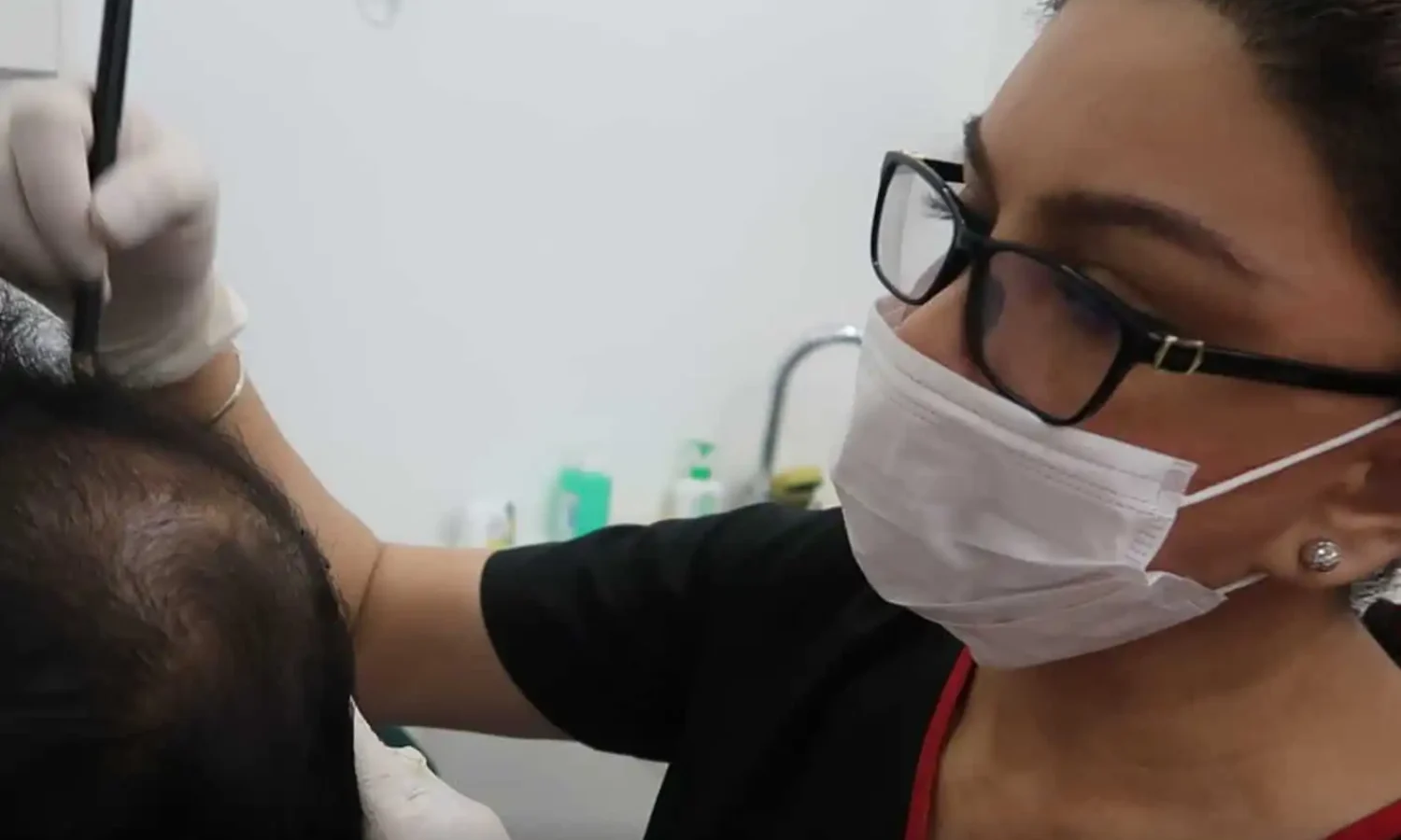 The ink that is being placed in the affected areas is made to precisely match the patient’s natural hair color.