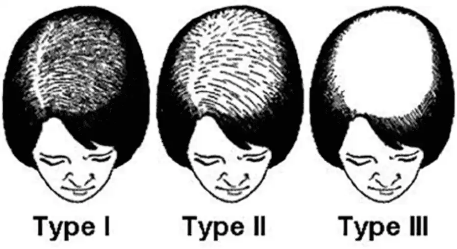 Grade I: Perceptible thinning of the hair on the crown, limited in the front by a line situated 1-3 cm behind the frontal hairline